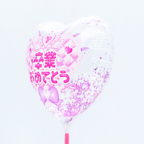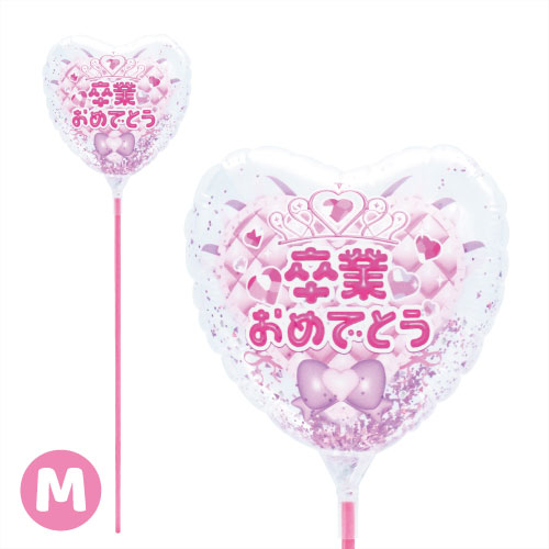 MVPスティックバルーン115mmハート 卒業おめでとう キラ盛りピンクハート 充填タイプ