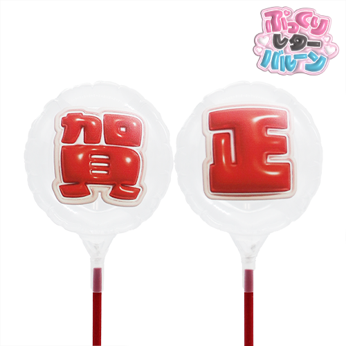 MVPスティックバルーン 80mmラウンド ぷっくりレター レッド「賀正」2文字セット 充填タイプ